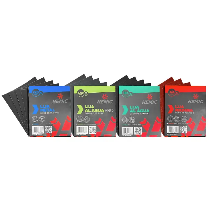 Acabados perfectos para madera, metal, pintura y más. Fabricados con granos abrasivos de alta calidad y diferentes respaldos, garantizan un lijado uniforme, eficiente y duradero. Disponibles en variadas granulometrías para tareas de desbaste, afinado o pulido, tanto en uso manual como con herramientas eléctricas.